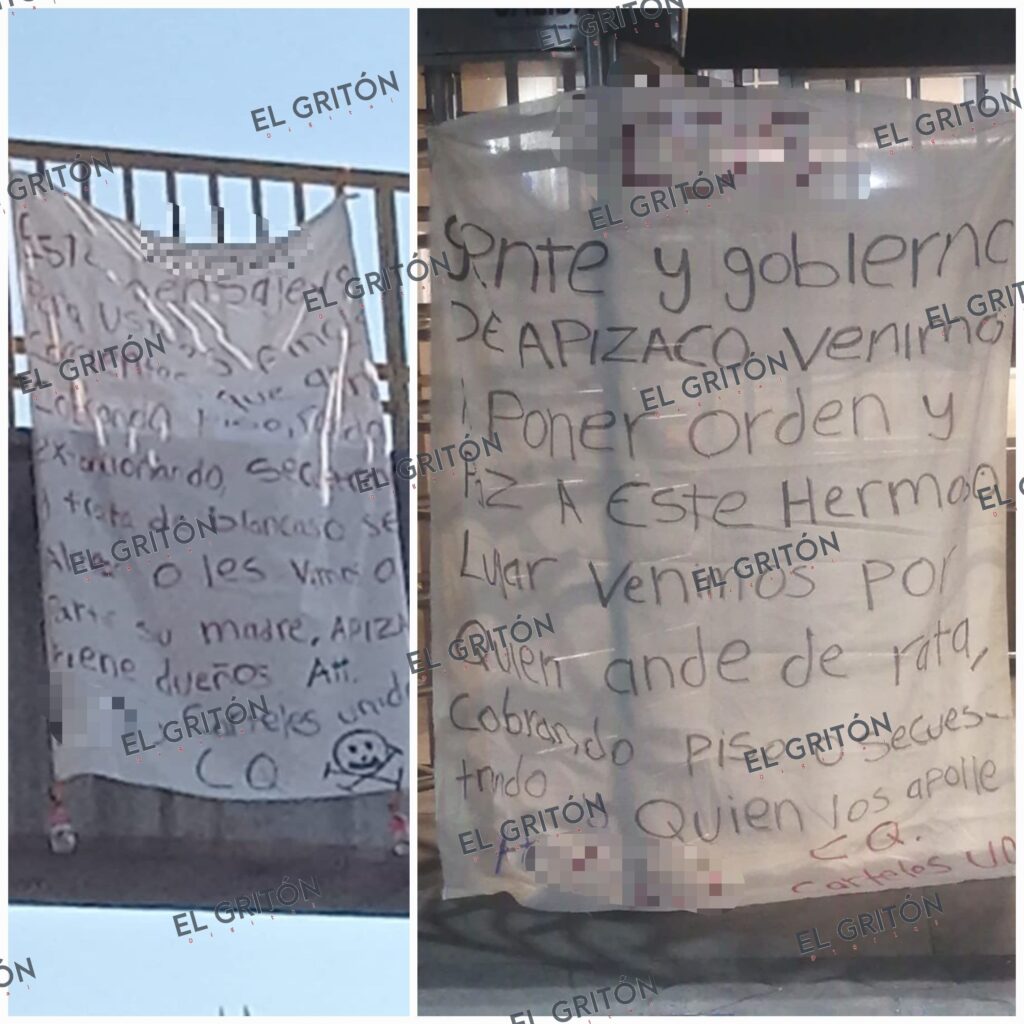 Este miércoles 17 de abril, oficiales de la Procuraduría General de Justicia del Estado y de la Secretaría de Seguridad Ciudadana (SSC), retiraron dos mantas atribuidas a la delincuencia organizada, en los municipios de Apizaco y Tetla de la Solidaridad.