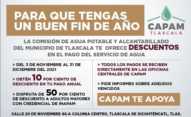 • Desde este 20 de noviembre, la CAPAM abrió sus cajas para recibir pagos cada sábado en un horario de 9:00 am a 14:00 pm.