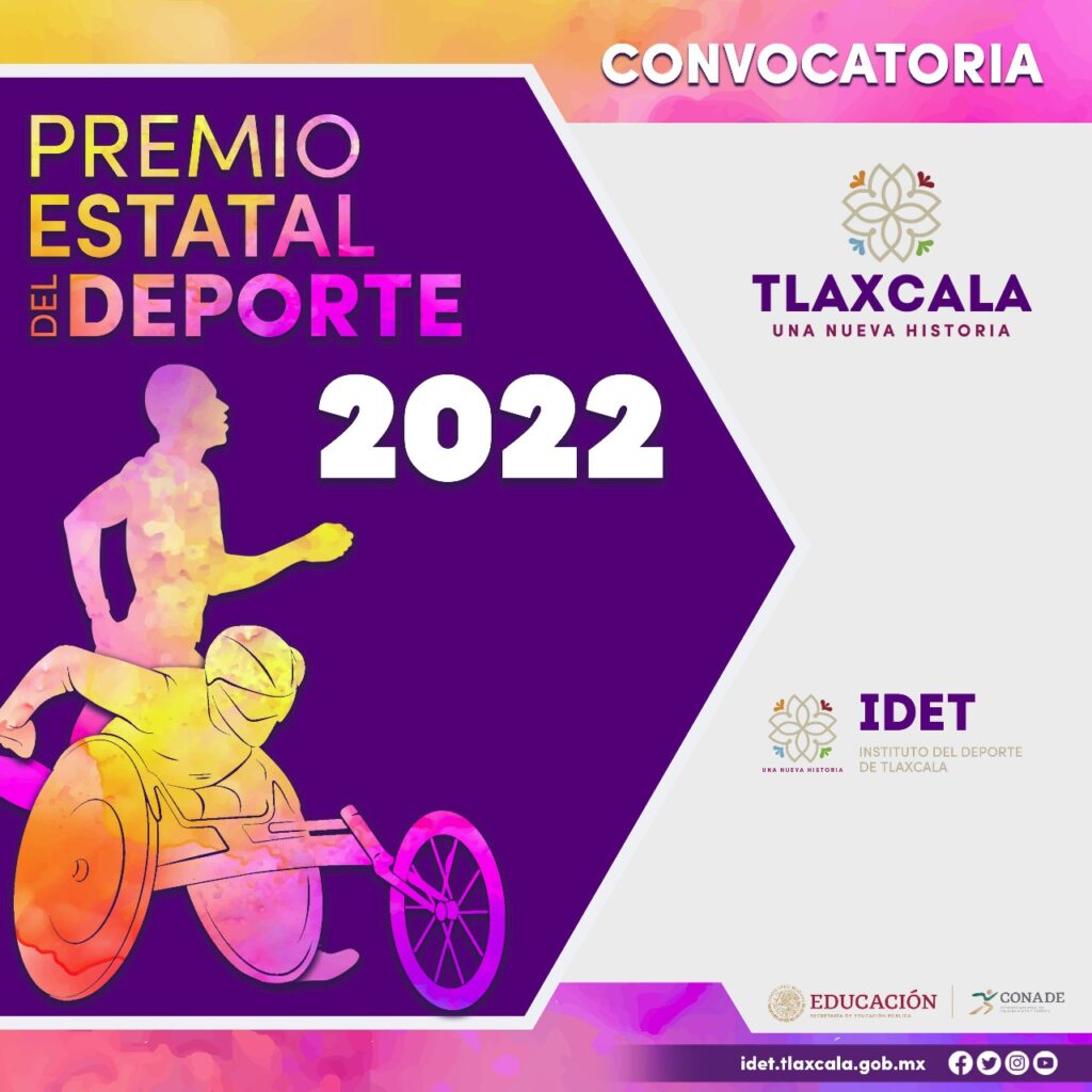 Como parte de las acciones para reconocer y distinguir al talento deportivo más destacado, el Gobierno del Estado, a través del Instituto del Deporte de Tlaxcala (IDET), abrió el proceso de recepción de solicitudes para participar en el Premio Estatal del Deporte 2022, en las modalidades deporte convencional o adaptado, categoría de deportista, entrenador y fomento, protección o impulso de la práctica de los deportes.