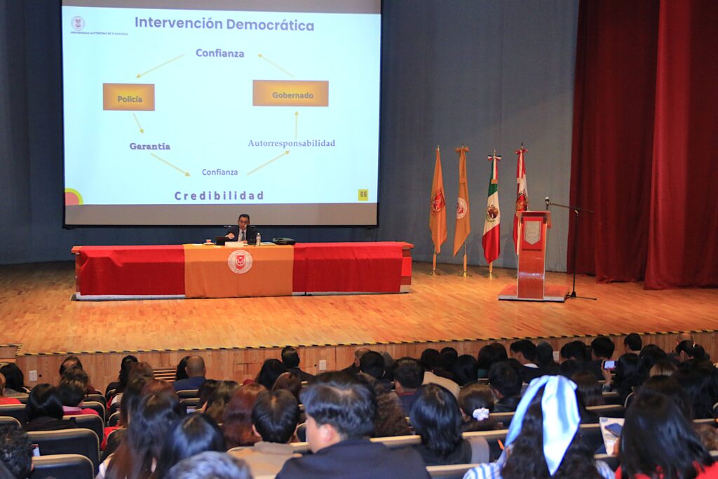 Durante el desarrollo del Seminario 𝐋𝐚 𝐏𝐨𝐥𝐢𝐜𝐢𝐨𝐥𝐨𝐠𝐢́𝐚 𝐜𝐨𝐦𝐨 𝐜𝐚𝐦𝐩𝐨 𝐝𝐞 𝐜𝐨𝐧𝐨𝐜𝐢𝐦𝐢𝐞𝐧𝐭𝐨: 𝐝𝐞𝐬𝐚𝐟𝐢́𝐨𝐬 𝐜𝐨𝐧𝐭𝐞𝐦𝐩𝐨𝐫𝐚́𝐧𝐞𝐨𝐬 𝐝𝐞 𝐥𝐚 𝐟𝐮𝐧𝐜𝐢𝐨́𝐧 𝐩𝐨𝐥𝐢𝐜𝐢𝐚𝐥, que organizó la Facultad de Derecho, Ciencias Políticas y Criminología de la Universidad Autónoma de Tlaxcala (FDCPyC-UATx), el Rector, Doctor Serafín Ortiz Ortiz, aseguró que la función policial tiene como eje fundamental la protección de los derechos humanos de las y los ciudadanos.