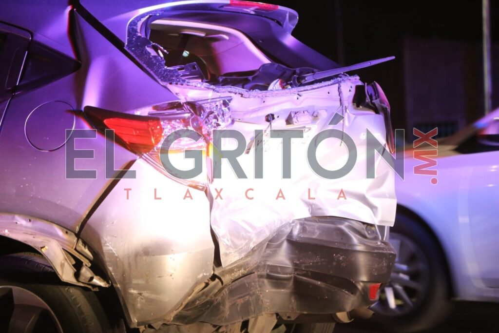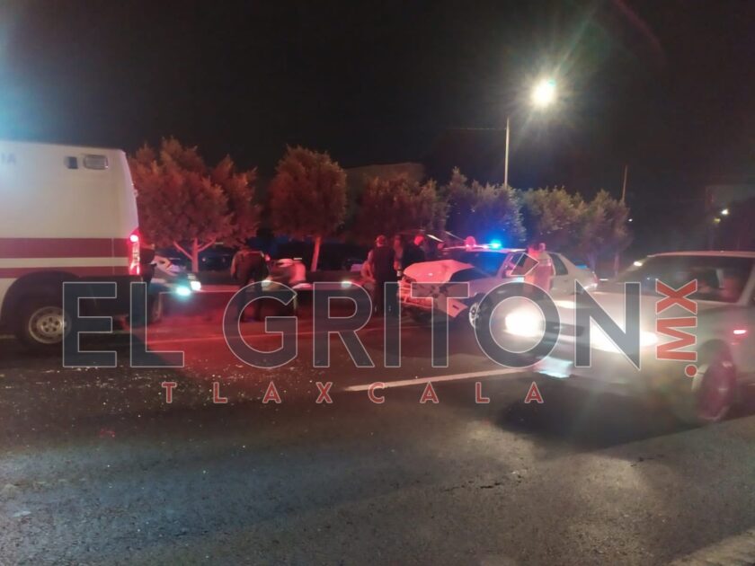 Paramédicos del Centro Regulador de Urgencias Médicas Tlaxcala (CRUMT), valoraron a una persona que por el impacto quedó un aturdida, por lo cual se dedujo solo daños materiales.