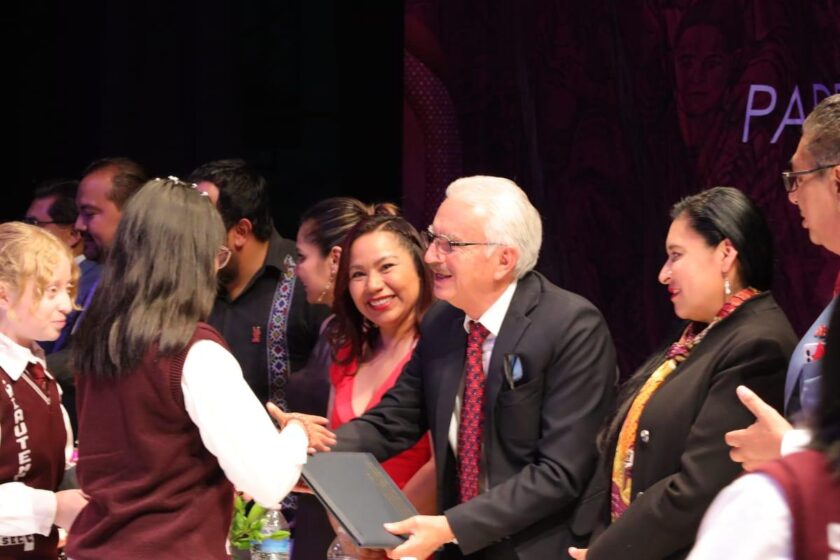 A esta importante ceremonia asistió el secretario de Educación Pública del Estado, Homero Meneses Hernández en representación de la gobernadora Lorena Cuéllar Cisneros, así como la síndica municipal de Chiautempan, María Estela Hernández Grande, entre otros invitados especiales del gobierno del estado y de la autoridad sindical.