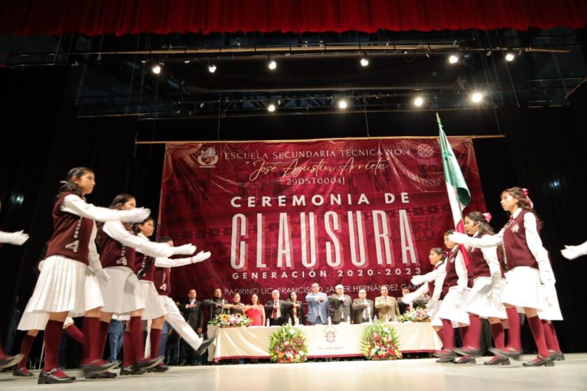 El presidente municipal de Chiautempan, Gustavo Jiménez Romero, acompañó la ceremonia de clausura de la generación 2020 – 2023 de los alumnos de la Secundaria Técnica número 4 “José Agustín Arrieta”.