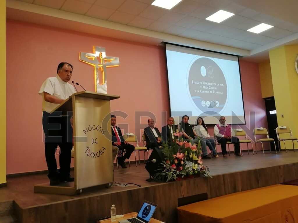 Dirigentes estatales de siete institutos políticos, firmaron el Acuerdo por la Paz, el Bien Común y la Cultura de Tlaxcala, convocado por la Diocesis local, documento en el que se detallan las estrategias de política pública para la paz en Tlaxcala durante el proceso electoral.
