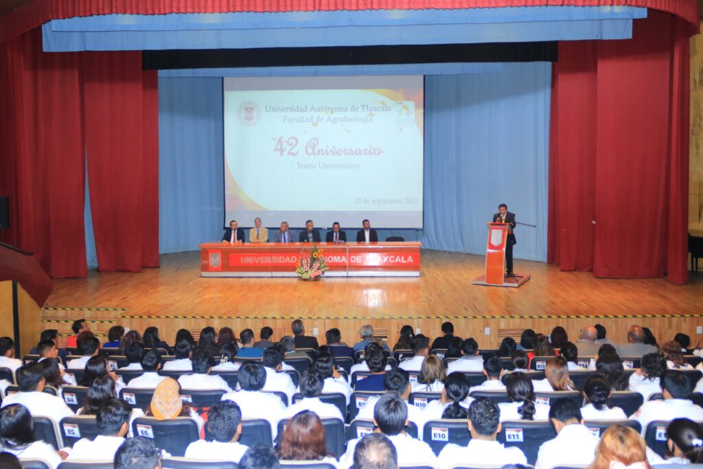En solemne y emotiva ceremonia realizada en el Teatro Universitario, la Facultad de Agrobiología de la Universidad Autónoma de Tlaxcala (FA-UATx) festejó con orgullo su 42 aniversario, destacando su papel crucial en la formación de cuadros esenciales para el desarrollo regional y la sustentabilidad.