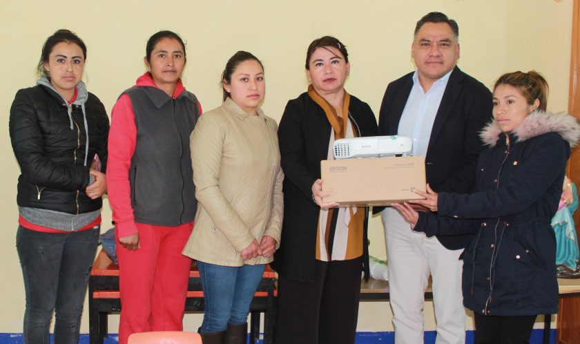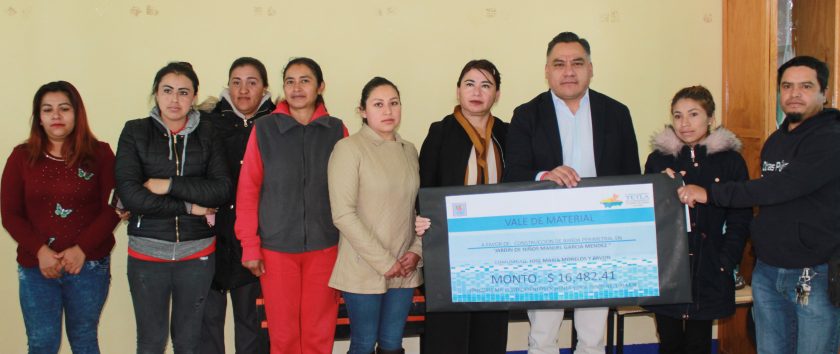 Los apoyos consistieron en la entrega de material para construcción de la segunda etapa de barda perimetral, equivalente a un monto de $16,482.41, además de un proyector multimedia para el preescolar.