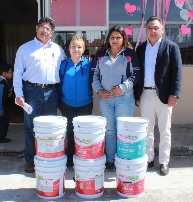 En lo que respecta a la escuela de educación primaria, recibió 6 botes de pintura de 19 litros, lo cual apoyara a darle mantenimiento a salones; en ambos casos del gobierno tetlense es el fortalecer y rehabilitar la infraestructura escolar.