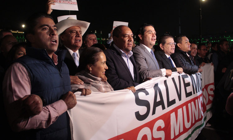 En el grupo de alcaldes manifestantes se encuentran integrantes de los partidos Acción Nacional, Revolucionario Institucional y de la Revolución Democrática.