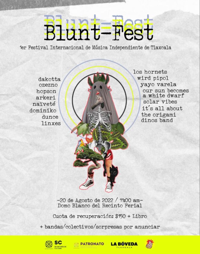 Colectivos y artistas independientes apoyados por la Secretaría de Cultura (SC) de Tlaxcala, presentaron este miércoles el primer “Blunt Fest” que servirá para dar a conocer a bandas musicales de la entidad, además de otros estados e incluso de Argentina.