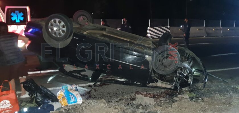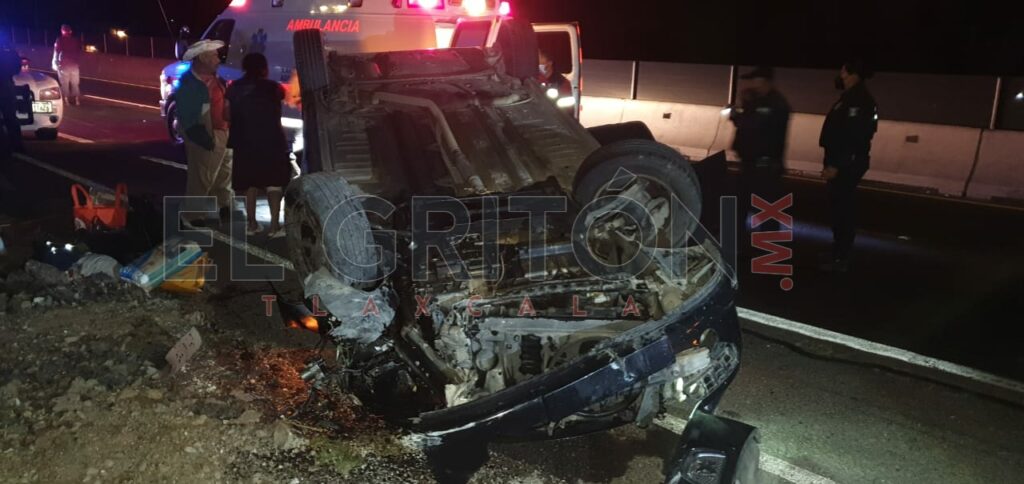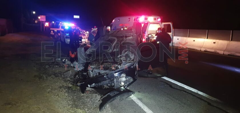 Tres lesionados, fue el saldo que dejó una aparatosa volcadura de un vehículo de la marca Peugeot, color negro, la noche de este sábado, en la carretera México – Veracruz, a la altura de Xaltocan.