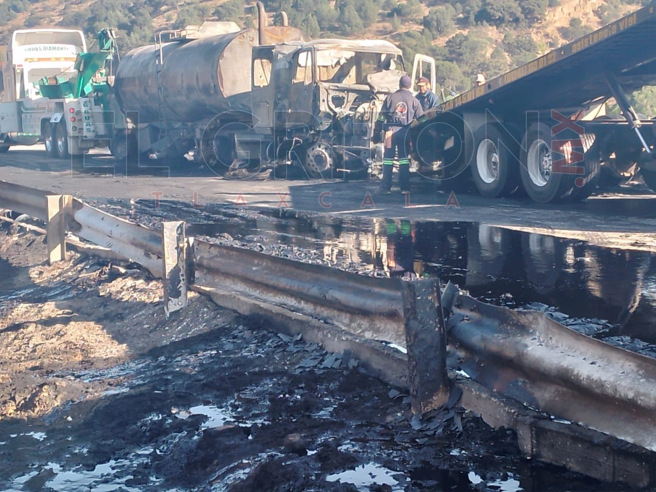 Cerca de las 09:00 horas, personal de una empresa de grúas comenzó a hacer el retiro de los restos de los autotanques para liberar la vía de comunicación.