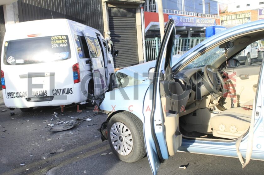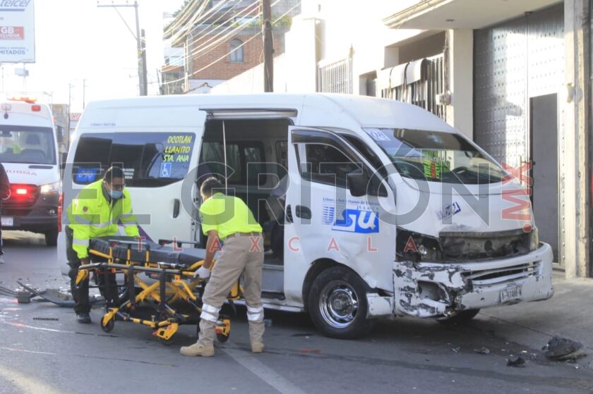 Al menos cinco personas lesionadas y daños materiales aún sin cuantificar, fue el saldo que dejó el choque entre un vehículo particular y una unidad del transporte público en el bulevar Ocotlán-Santa Ana, la mañana de este domingo.