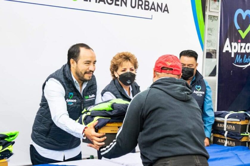 El alcalde de Apizaco, Pablo Badillo Sánchez, en compañía de su equipo de trabajo y de la Brigada 212, dio entrega de uniformes completos a personal que labora en el área de Servicios Municipales e Imagen Urbana del ayuntamiento.
