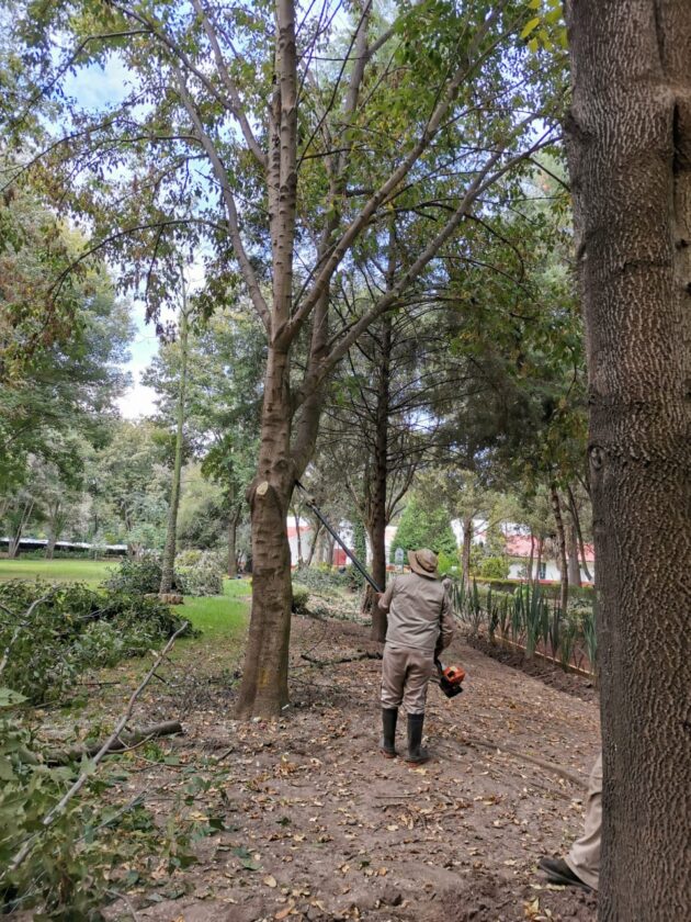 David Guerrero Tapia, titular de la CGE, informó que los trabajos que se realizan, en una primera etapa, contemplan la atención a la sección de “Arboretum”, donde personal de jardinería lleva a cabo el desrame, poda y retiro de árboles que ya cumplieron su ciclo de vida o presentan riesgo de caer.
