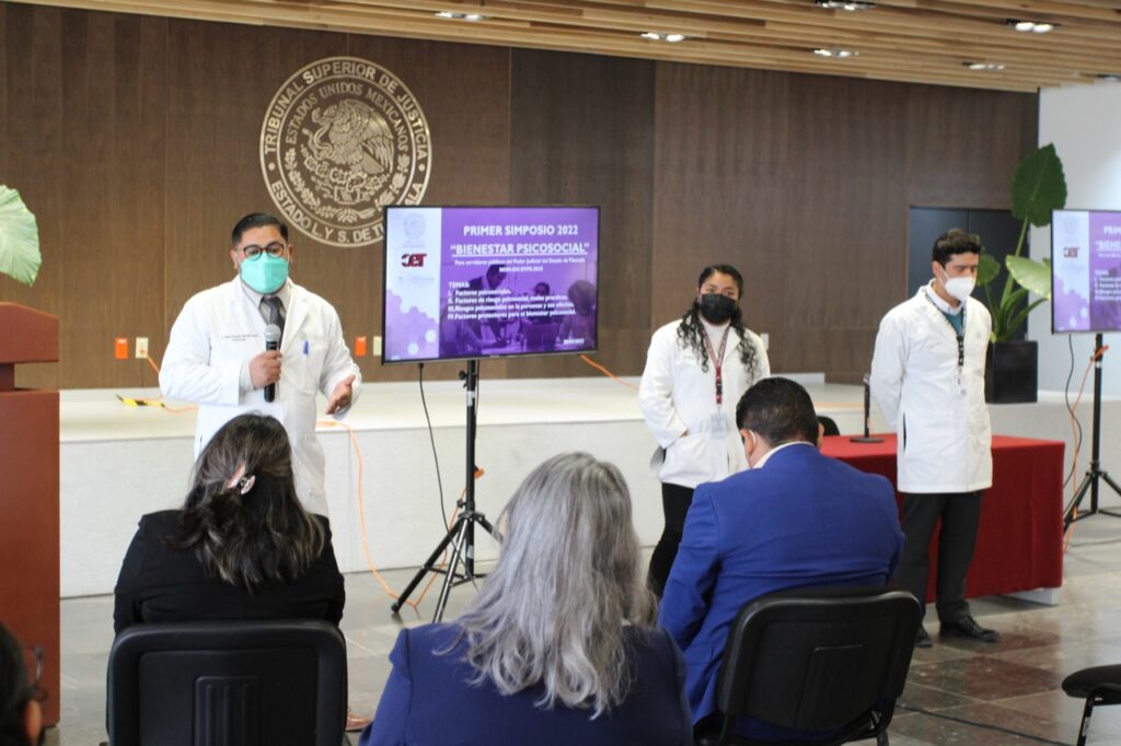 Con el objetivo de facilitar, en términos prácticos, el bienestar en el ambiente laboral y como parte del protocolo de aplicación de la norma 035-STPS-2018 de la Secretaría del Trabajo y Previsión Social, el área de Contención y Servicios Psicológicos del Poder Judicial del Estado, organizó el primer simposio denominado “Bienestar psicosocial para servidores públicos del Poder Judicial del Estado de Tlaxcala”.