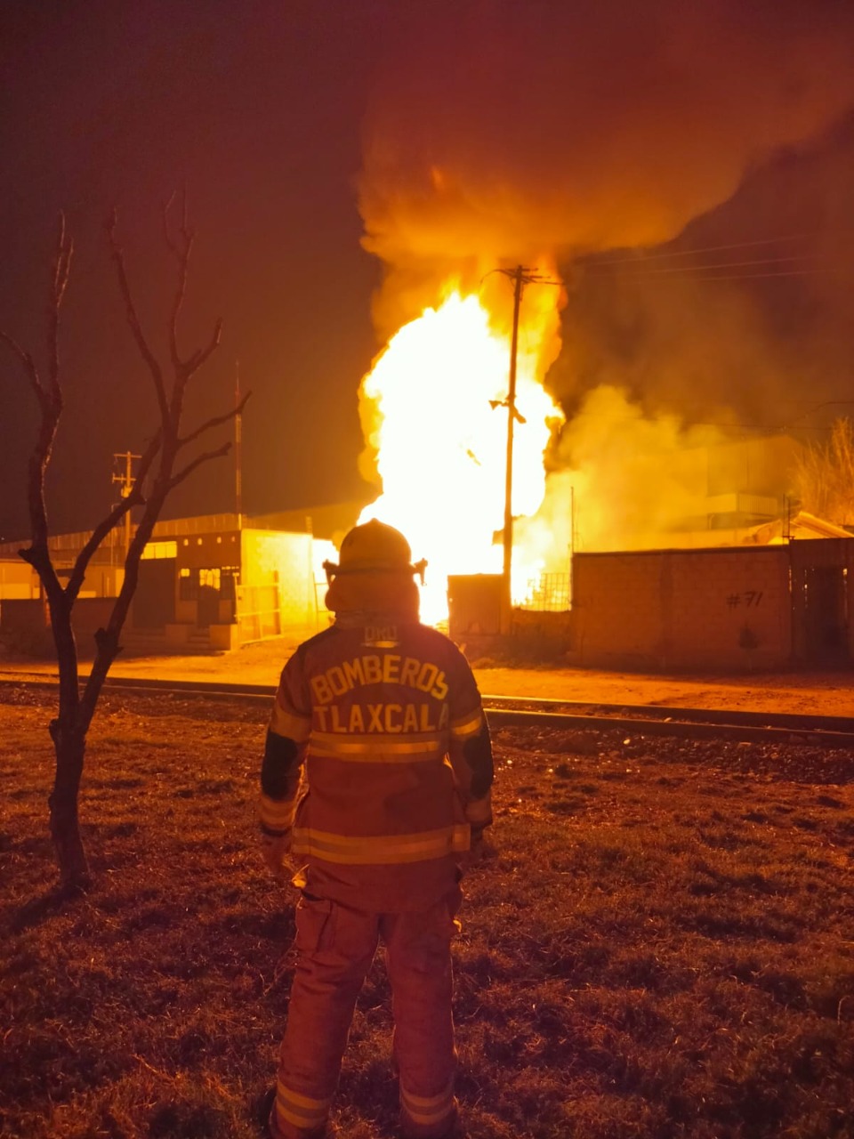 Protección Civil del Estado de Tlaxcala coordinó tres unidades de bomberos a cargo del delegado Antonio Cervantes Hernández, que laboraron para contener el incendio en espera de que se consuma en su totalidad el combustible.