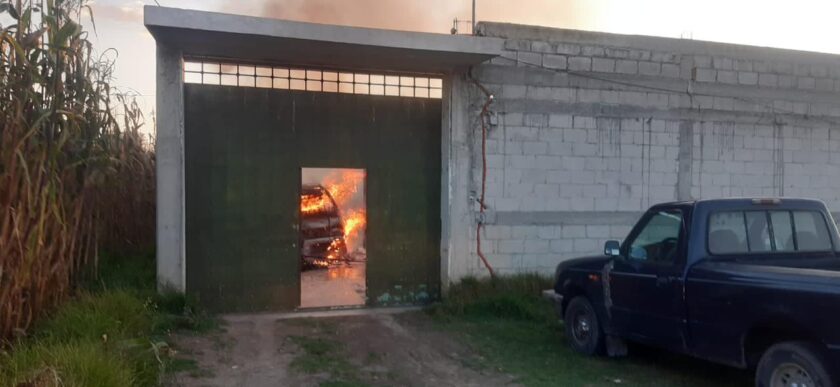 Al interior había dos unidades envueltas en llamas, la primera era una camioneta tipo Blazer color verde y la segunda, una motocicleta la cual se había consumido en su totalidad.