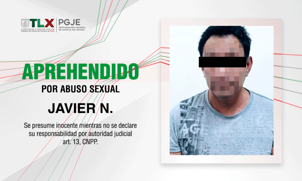 La Procuraduría General de Justicia del Estado (PGJE) a través de las labores de campo realizadas por los oficiales de la Policía de Investigación y dando seguimiento a las indagatorias respectivas, logró la captura de Javier N., quien contaba con una orden de aprehensión por el delito de abuso sexual.