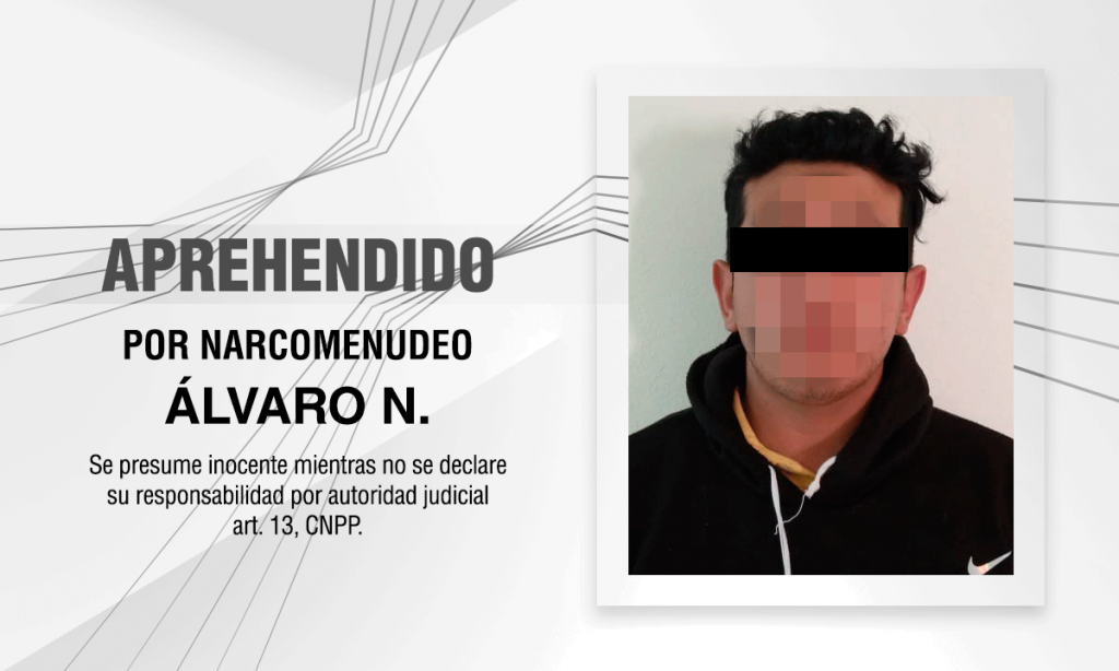 Oficiales de la Policía de Investigación adscritos a la Procuraduría General de Justicia el Estado (PGJE) cumplimentaron una orden de aprehensión en contra de Álvaro N., por delitos contra la salud en su modalidad de narcomenudeo.
