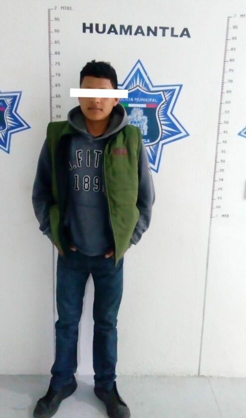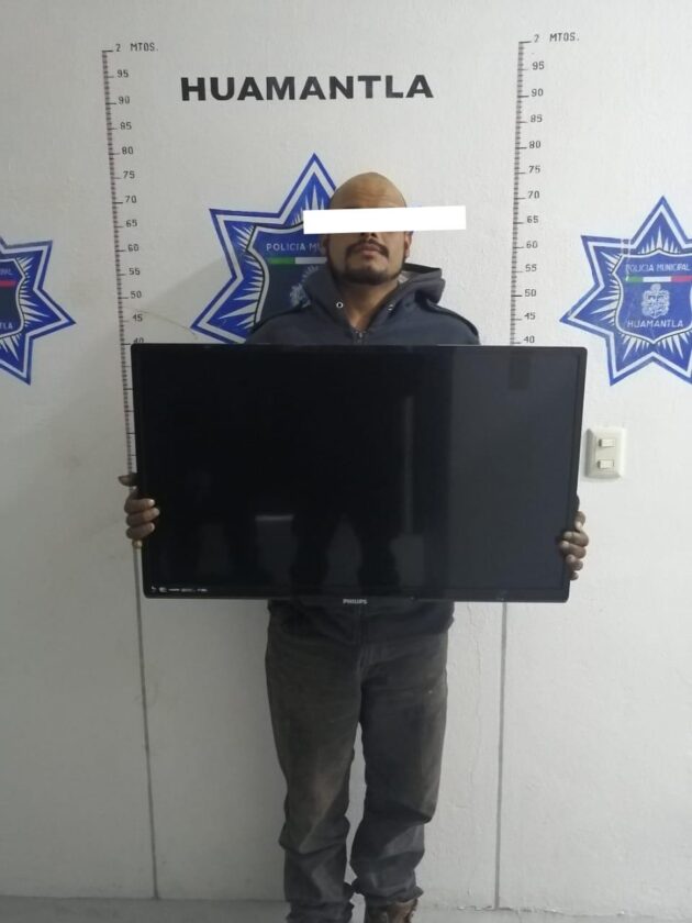 También se logró asegurar en flagrancia a Gonzalo N. de 39 años de edad, originario de Huamantla, sobre la calle Hidalgo poniente, minutos después de haber ingresado a un local comercial con razón social “Agencia de viajes Huamantla, venta de boletos de avión y autobús”, cuando salía con algunos objetos