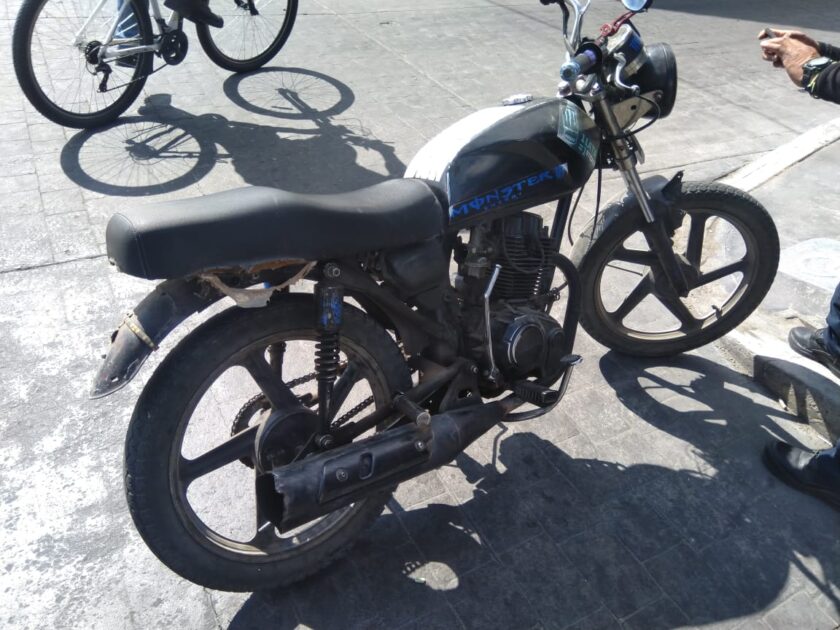 Durante el operativo contra motocicletas, se logró detectar que Oscar Noé N., de 18 años de edad, de ocupación mecánico y con domicilio en la ciudad de Huamantla, viajaba a bordo de una motocicleta con reporte de robo, al solicitarle que acreditará la propiedad señaló no contar con la documentación correspondiente.