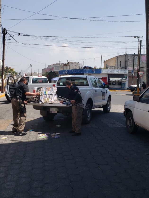 Motivo por la cual, elementos de la Policía Federal Ministerial se constituyeron en el barrio El Cristo, municipio de San Pablo del Monte para corroborar los hechos denunciados, en donde aseguraron mil 772 videogramas y fonogramas, así como mil 772 portadillas apócrifas.