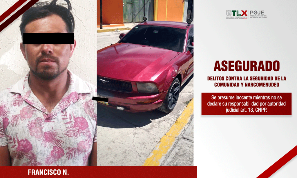 Por lo que al estar ante un delito flagrante, la persona que dijo llamarse Francisco N., de 27 años de edad, fue asegurada y puesta a disposición del Agente del Ministerio Público por delitos contra la salud en su modalidad de narcomenudeo.