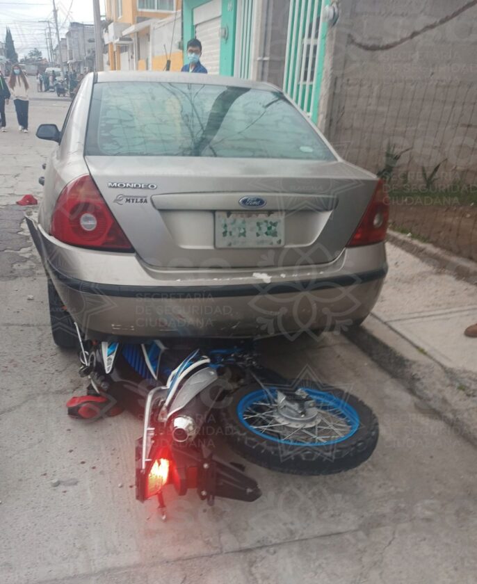 Asimismo, en Apizaco se aseguró sobre calle Paraíso un automóvil marca Ford Mondeo, modelo 2013 con placas de circulación de la Ciudad de México y una motocicleta marca Italika, tipo 250 CC, color negro con azul y sin placas.