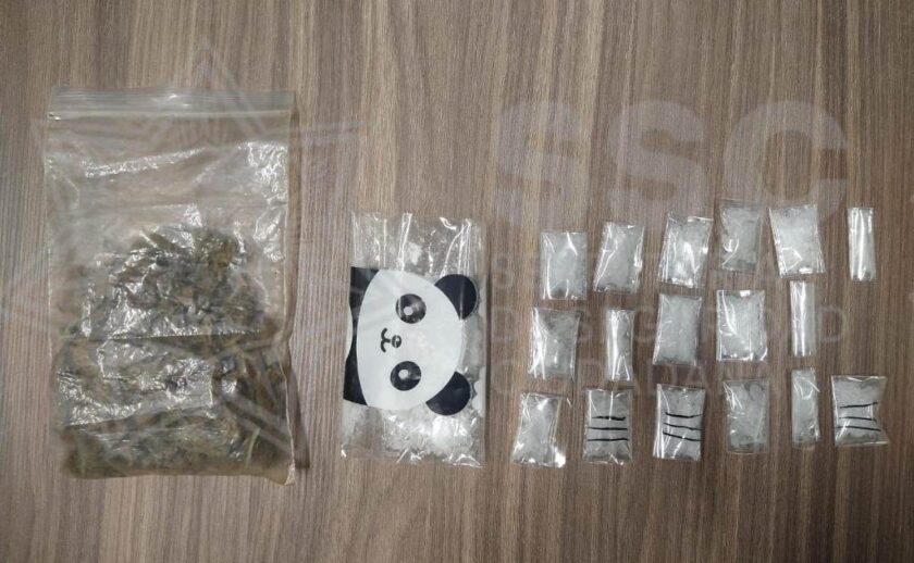 El resultado fue ubicar entre sus pertenencias 17 envoltorios transparentes y una bolsa más, las cuales contenían en su interior una sustancia sólida granulada con las características propias de la droga conocida como “cristal”.