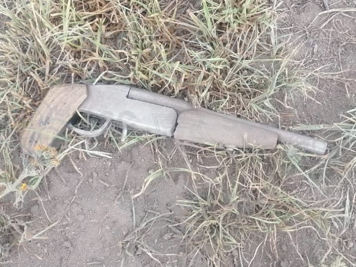 Por lo anterior, se procedió a inspeccionar el lugar, confirmando la localización de un arma de fuego, tipo escopeta de fabricación artesanal, de color gris, empuñadura de madera color café.