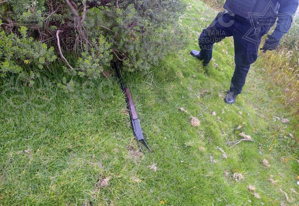 Se trata de una escopeta calibre .20mm, sin marca, fabricación artesanal, sin culata, hallada en un camino de terracería a la orilla de la laguna denominada Zacatepec, cuando los elementos estatales atendieron el reporte que refería que una persona del sexo masculino se encontraba cazando patos y al ver la presencia policial huyó dejando el arma.