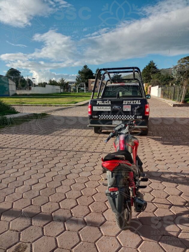 En distintas acciones, el personal de la SSC recuperó una motocicleta marca Italika, línea FT125, modelo 2019, color rojo en la comuna de Ixtacuixtla; así como una Veloci, línea 200 CC, modelo 2019, color rojo en Tlaxco. Ambas fueron consultadas en el Sistema Plataforma México, en los registros del Servicio de Emergencias 911 y en el sistema de Registro Público Vehicular (Repuve) para verificar su estatus y cuentan reporte de robo de motor.
