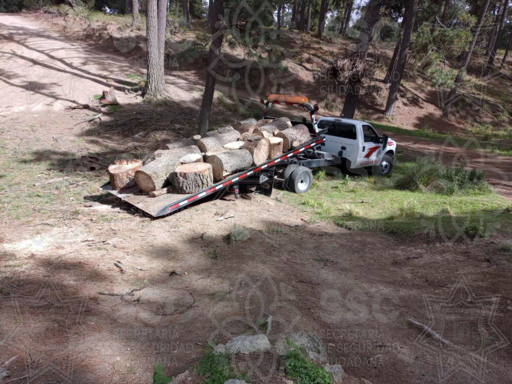 Elementos de la Secretaría de Seguridad Ciudadana (SSC), a través de la Policía de Montaña, aseguraron material forestal, que fue localizado en una zona perteneciente al área natural protegida del Parque Nacional Malinche.