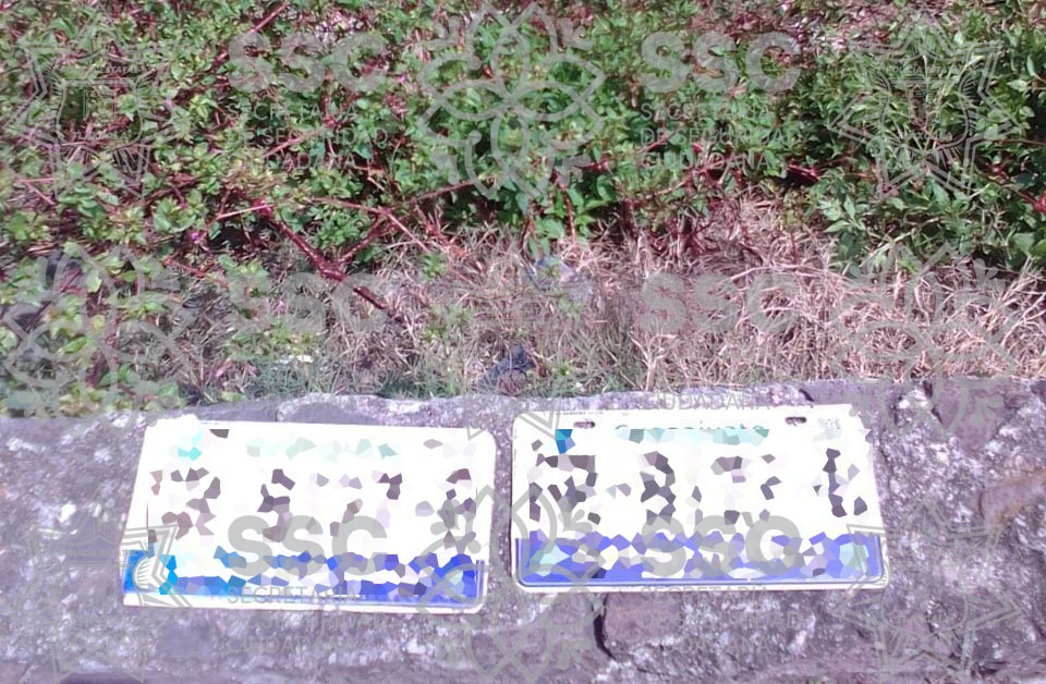 Durante acciones de patrullaje de prevención, personal de la Dirección de Seguridad, delegación Tlaxcala, de la Secretaría de Seguridad Ciudadana (SSC) aseguró un juego de placas de circulación con reporte de robo vigente y que se encontraban abandonadas en el municipio de Panotla.