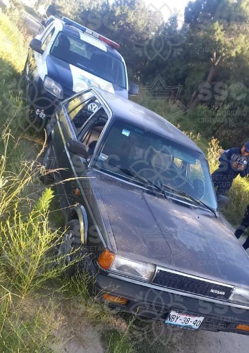 Asimismo, en carretera Tlaxco-Chignahuapan, a la altura de la comunidad de El Sabinal, se aseguró un vehículo Nissan, línea Tsuru, color blanco, por contar con reporte de robo en el motor, de acuerdo con el Sistema de Plataforma México; siendo también asegurado el conductor identificado como Jesús N., de 24 años de edad, quien no acreditó la posesión legal de la unidad.