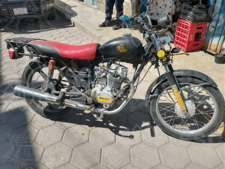 De igual forma, los elementos estatales aseguraron una motocicleta Italika, línea FT-150, modelo 2021, sin placa, con el número de motor esmerilado; una segunda motocicleta Italika, línea FT-150 y un vehículo Nissan, línea Tsuru, color gris. Dichas unidades presentaron alteraciones en sus medios de identificación.