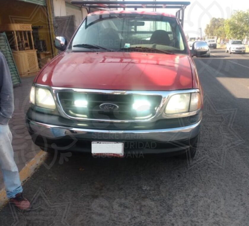 Durante una primera acción, sobre la carretera Vía Corta Chiautempan–Puebla, a la altura del municipio de La Magdalena Tlaltelulco, una camioneta Ford, Pick Up F250, color rojo, modelo 2001, fue asegurada por el uso de luces estroboscópicas, equipo similar a los de los cuerpos policiales.