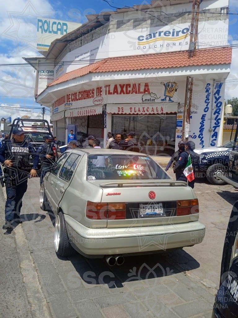 Elementos de la SSC, que realizaban recorridos de seguridad y vigilancia, sobre la carretera federal Puebla – Tlaxcala, a la altura de la Tercera Sección del municipio de Zacatelco, detectaron a una persona a bordo de una unidad de la marca Volkswagen, tipo Jetta, el cual utilizaba un altoparlante con sonidos similares a vehículos policiales y de emergencias.