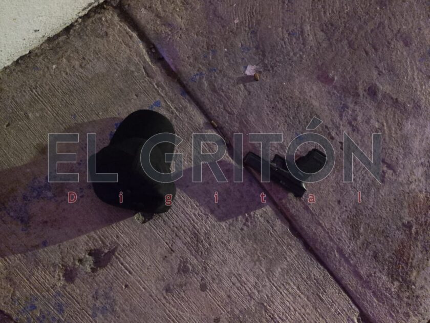 Las autoridades de la PGJE aseguraron un arma 9 mm y varios casquillos percutidos, además, fotografiaron un automóvil de la marca Nissan que presentó poco más de siete impactos por arma de fuego producto del enfrentamiento.