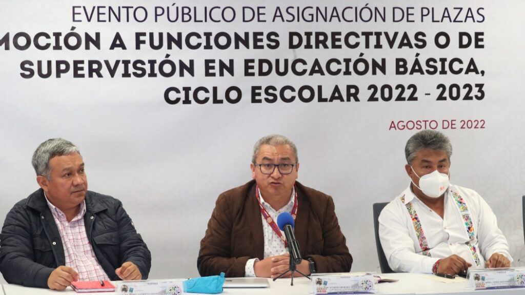 La Secretaría de Educación Pública del Estado (SEPE) y la Unidad de Servicios Educativos de Tlaxcala (USET) realizaron el evento público de asignación de 16 plazas de promoción a funciones directivas o de supervisión, en educación básica para el ciclo escolar 2022-2023, en la sala “Lucio Cabañas Barrientos” de oficinas centrales.