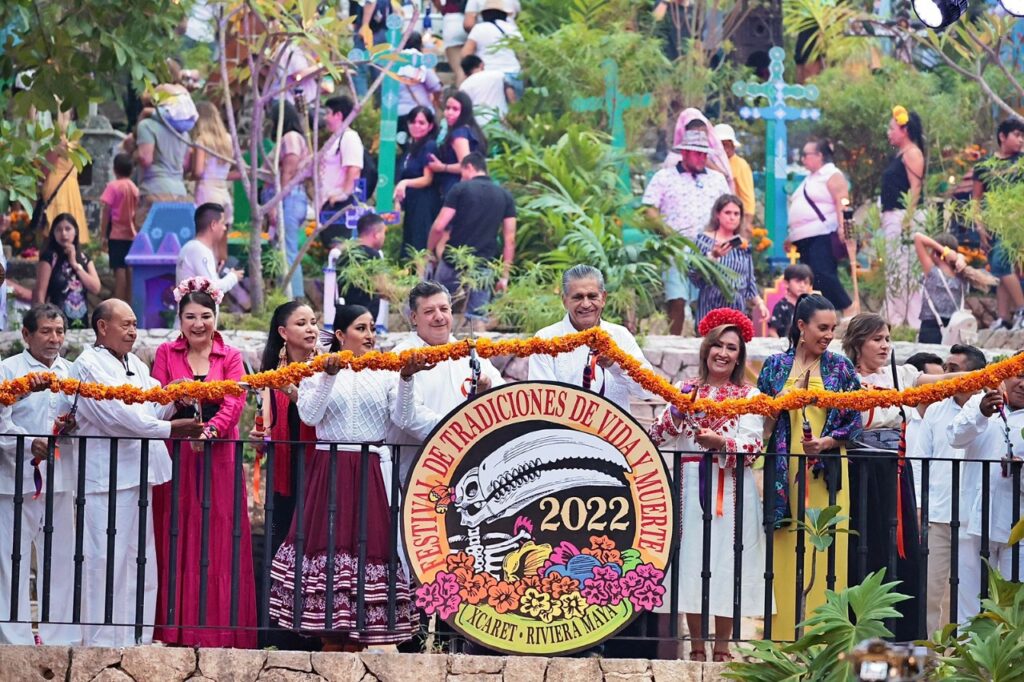 La gobernadora Lorena Cuéllar Cisneros asistió a la inauguración del Festival de Tradiciones de Vida y Muerte, organizado por el parque Xcaret, en Playa del Carmen, Quintana Roo, donde 280 tlaxcaltecas de 20 municipios mostrarán la cultura y tradiciones de Tlaxcala.