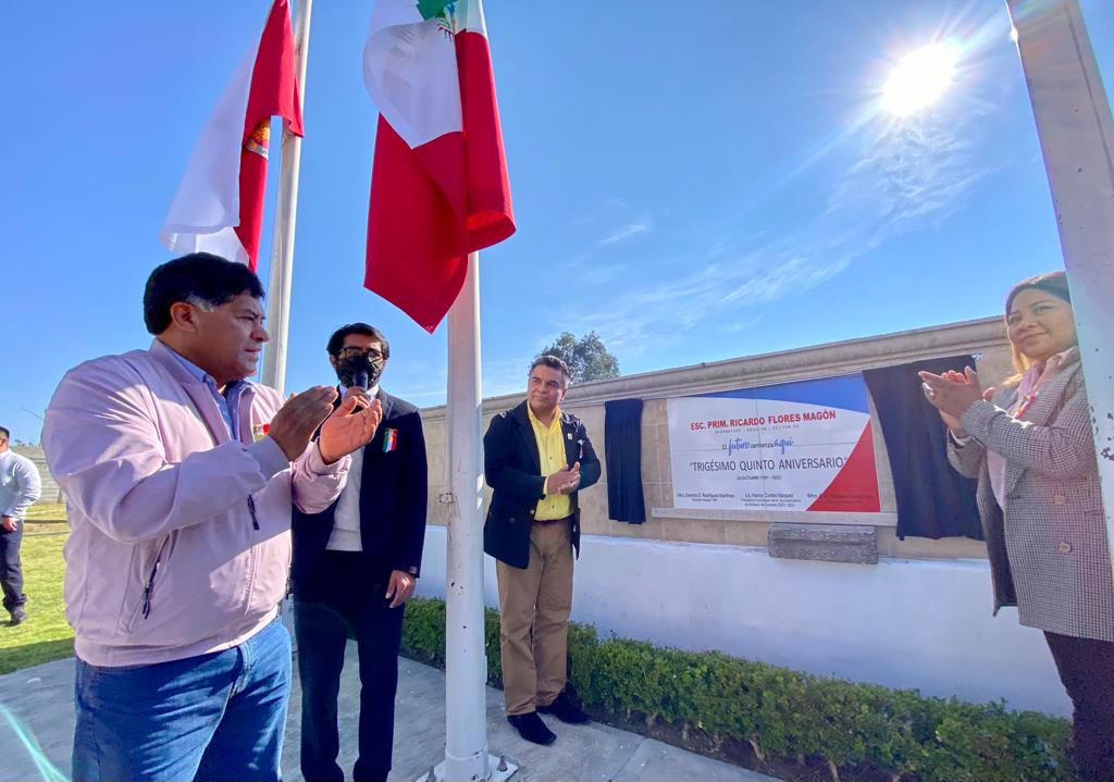 En su mensaje, el director fundador, Gerardo Sostenes Rodríguez, recordó que la primaria “Ricardo Flores Magón”, fue una de las primeras instituciones en el Estado de Tlaxcala creada por indicación de un expresidente de la República mexicana, en ese entonces, Miguel de la Madrid Hurtado, en el año 1986.