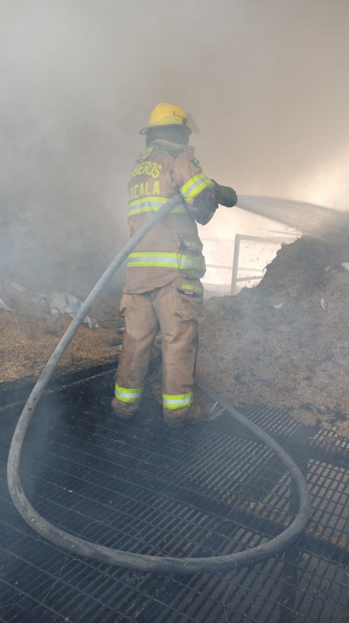 En el primer caso fue sobre calle 5 de Mayo del barrio de Teotitla del municipio de Santa Isabel Xiloxoxtla, donde al arribar al lugar observaron el incendio en una bodega construida de bloc y lámina galvanizada de aproximadamente 50 metros cuadrados, que al interior resguardaba costales de zacate molido, por lo que bomberos procedieron a controlar y sofocar en tu totalidad dicho incendio.