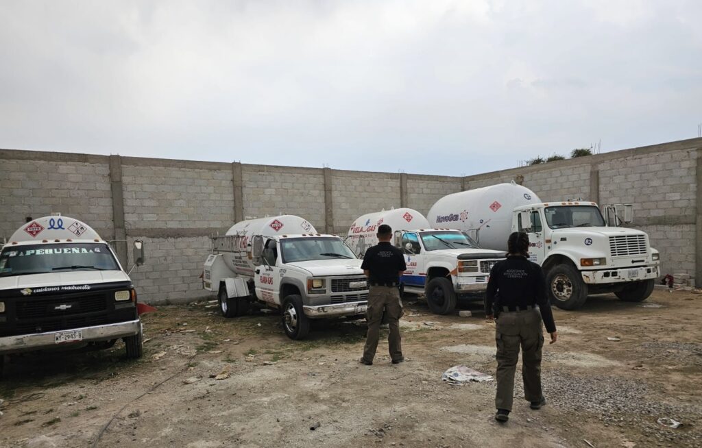 La Policía Federal Ministerial (PFM) de la Agencia de Investigación Criminal (AIC) y peritos especializados en diferentes materias, cumplimentaron el cateo en el que se aseguró un inmueble, dos autotanques con capacidad de 11 mil litros, un autotanque con capacidad de cinco mil litros, dos autotanques con capacidad de seis mil litros, seis tanques para almacenamiento de gas con capacidad de cinco mil litros, una bomba y mangueras de alta presión, lo anterior se encuentra en espera de determinar volumetría.
