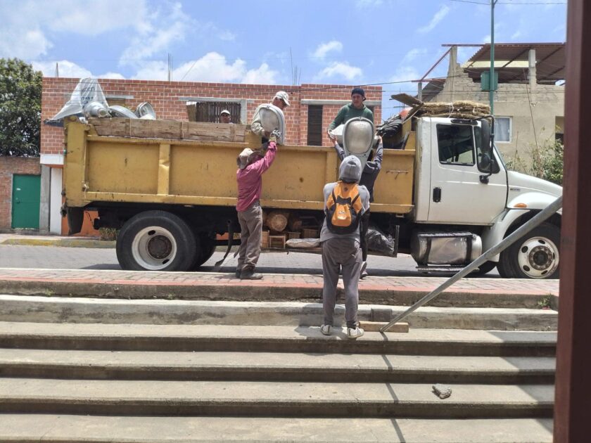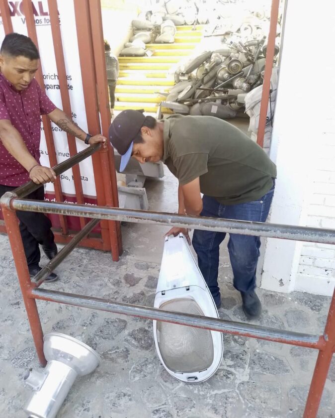 Como parte de la transformación del espacio, están siendo retiradas las lámparas que se han sustituido del programa ¡Que se haga la Luz en Tlaxcala Capital¡, las cuales se trasladan del deportivo a una bodega.