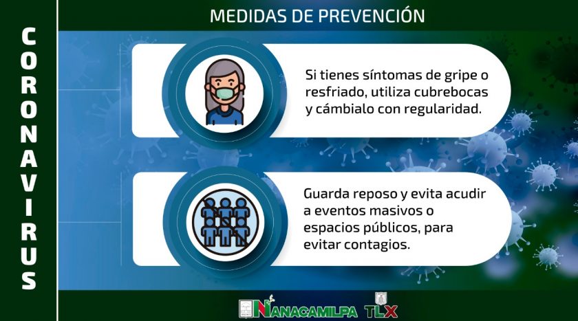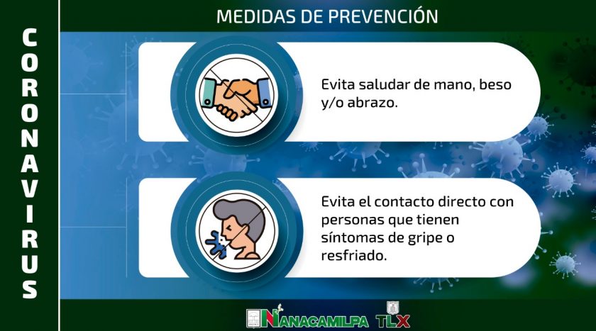 Finalmente, pidió a los ciudadanos hacer caso de todas las recomendaciones que se den a conocer, ya que es importante llevar a cabo el lavado de manos de manera constante; al estornudar o toser cubrirse la nariz y boca con un pañuelo desechable o con el ángulo del brazo, evitar contacto directo con personas que tienen síntomas de resfriado o gripe y evitar el saludo de mano, beso y/o abrazo, así como asistir a eventos públicos o privados con presencia mayor a 30 personas.