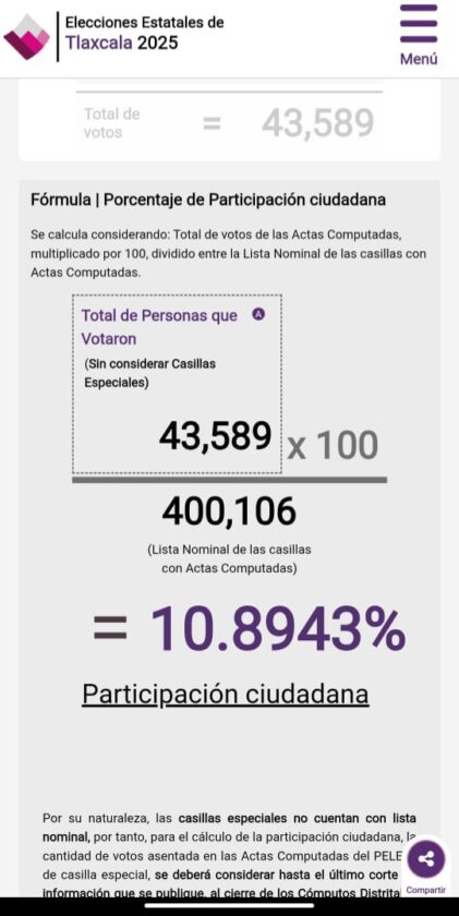 Con apenas el 38 por ciento de las actas computadas, los datos preliminares confirman una elección opacada por el abstencionismo y la anulación masiva del voto, y una estimación señala que la participación ciudadana no sería mayor del 30% del total de ciudadanos de Tlaxcala.