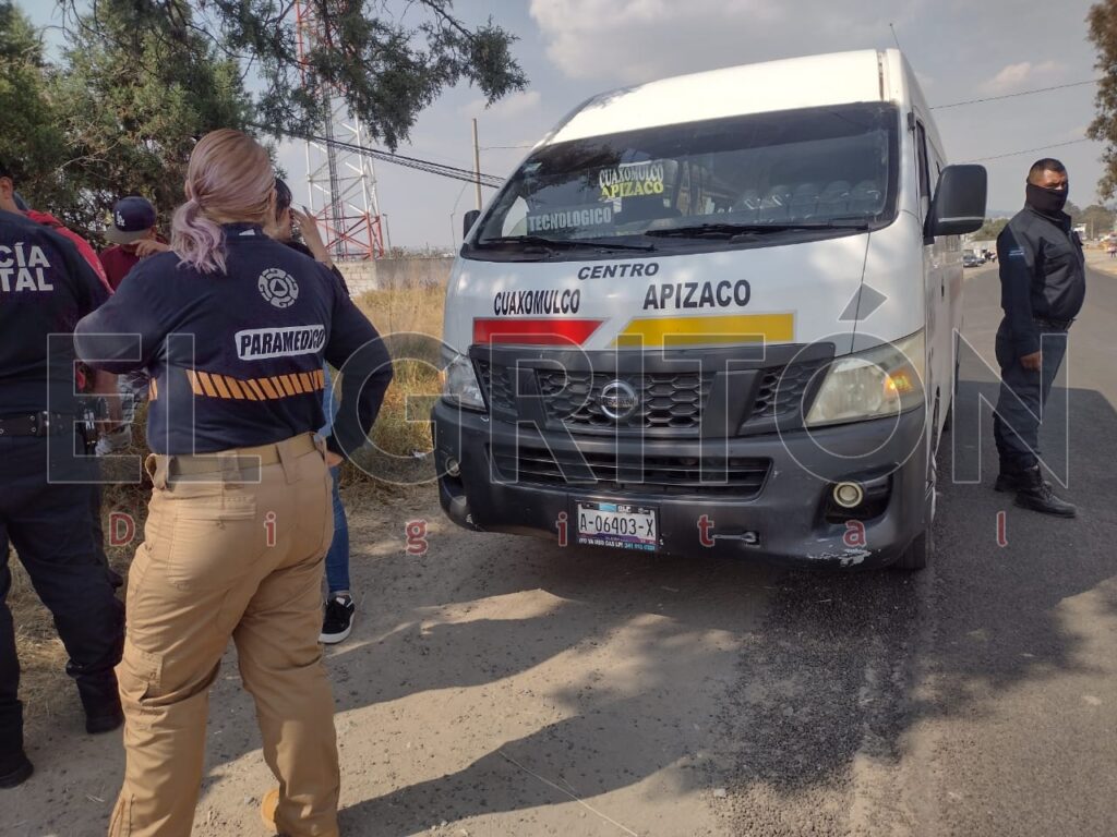 El hecho fue reportado cerca de las 13:30 horas sobre la carretera Cuaxomulco–Apizaco, casi en el cruce con la calle 19 de Marzo, frente al Fraccionamiento Los Girasoles. Testigos señalaron que los delincuentes viajaban en motocicleta, abordaron el colectivo a la fuerza, sometieron al conductor y despojaron a los pasajeros de celulares, carteras y objetos personales.