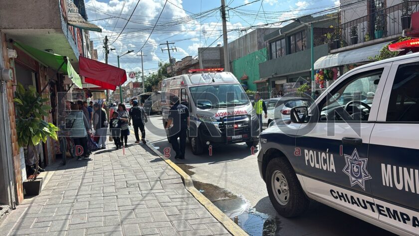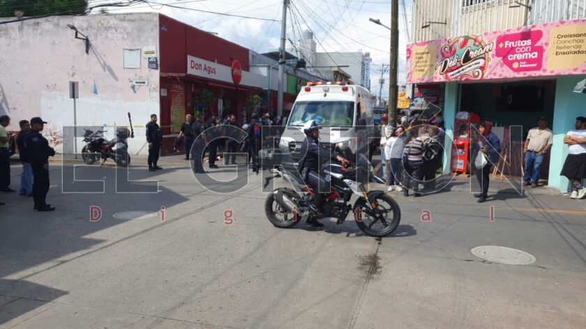 Chiautempan, Tlax.- Dos hombres fueron baleados durante un violento asalto en la esquina de las calles Morelos e Ignacio Picazo, luego de haber retirado una fuerte suma de dinero de un banco en la zona.