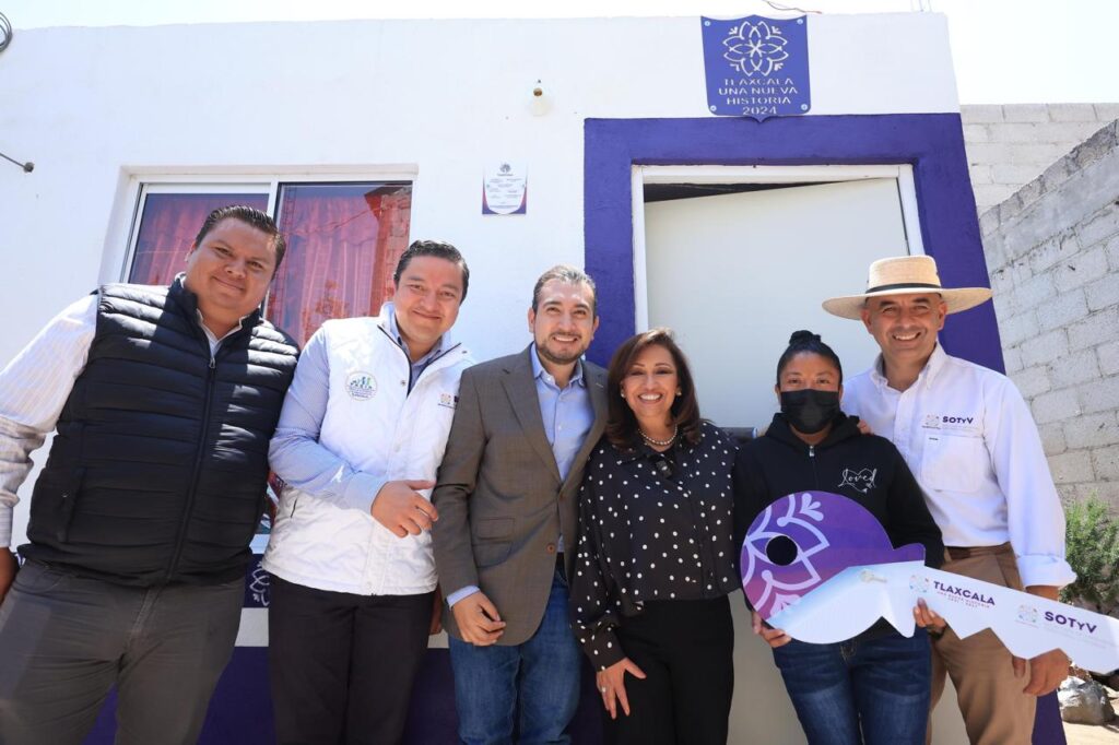 La gobernadora Lorena Cuéllar Cisneros, acompañada del presidente de Huamantla, Juan Salvador Santos Cedillo, y del titular de la Secretaría de Ordenamiento Territorial y Vivienda (SOTyV), David Guerrero Tapia, encabezó la entrega de 51 cuartos dormitorios y tres cuartos dormitorio con baño del programa “Viviendas Adecuadas con Espacios Dignos 2025”.
